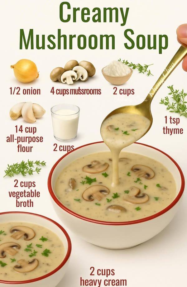Mushrooms bring a unique umami flavor that elevates simple ingredients into something truly special. When paired with cream and a hint of garlic or herbs, they create a soup that’s both hearty and elegant — ideal as a starter, light meal, or even a cozy snack.